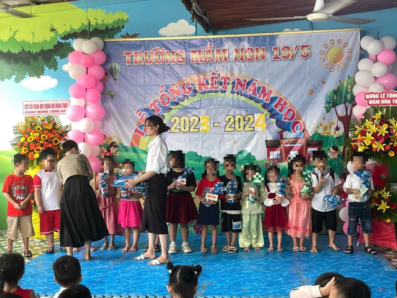 Đồng Tháp, ngày 31 tháng 5 năm 2024 – Sáng nay, tại Mầm Non Tư Thục 19/5 đã diễn ra Lễ Tổng Kết Năm Học 2023-2024 trong không khí trang trọng và đầy hứng khởi. Buổi lễ bắt đầu lúc 7h30 với sự tham gia của đông đảo các bậc phụ huynh, học sinh, cùng các đại biểu và đại diện từ Công Ty TNHH Giáo Dục QME.