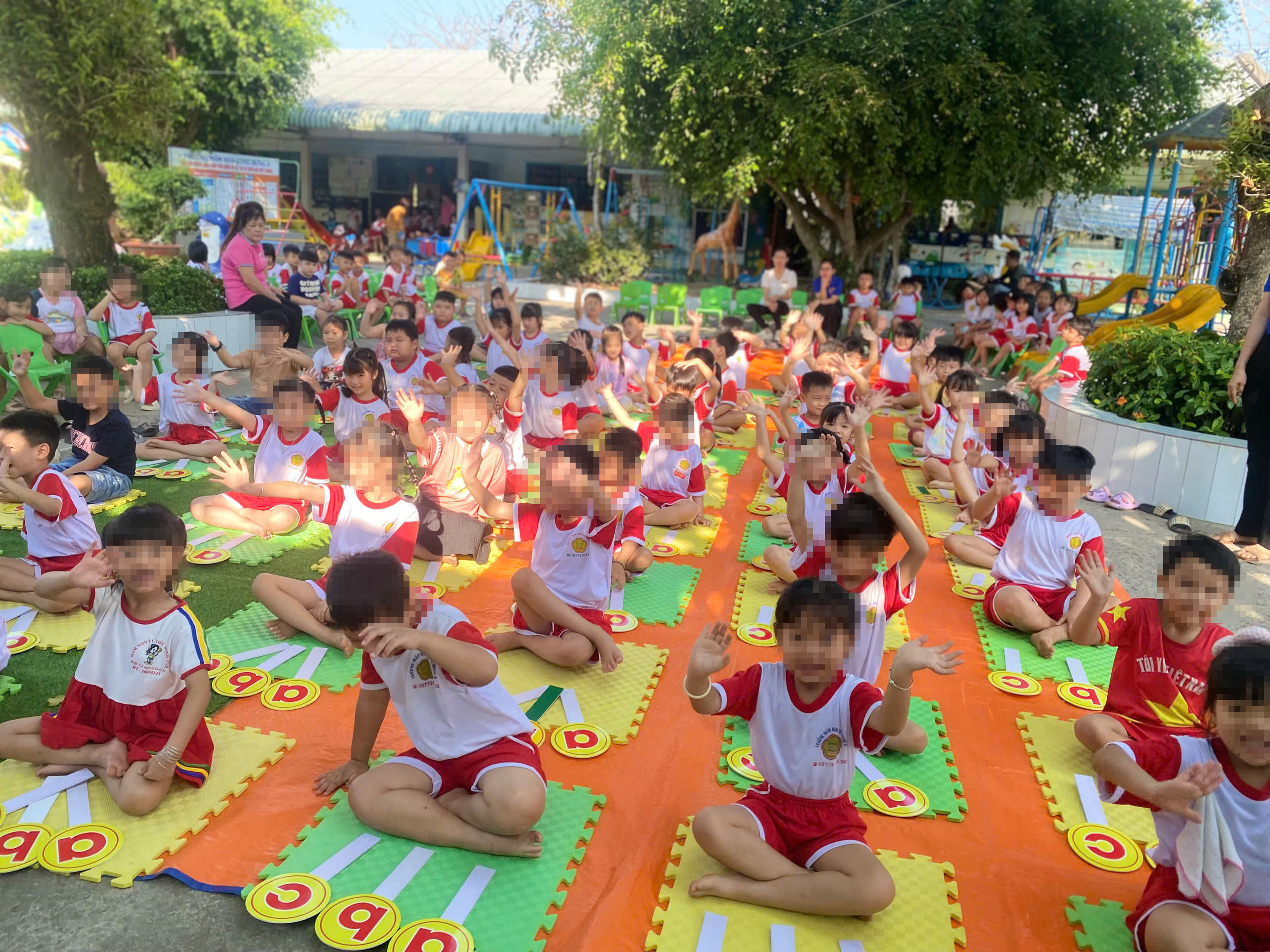 Chương trình được triển khai trong không gian lớp học quen thuộc, với cách bố trí khoa học nhằm tạo điều kiện thuận lợi cho trẻ tham gia. Mỗi bé được trang bị bảng trả lời cá nhân, giúp chủ động thể hiện khả năng của mình trong từng câu hỏi. Không gian thân thiện, gần gũi góp phần giúp trẻ tự tin và thoải mái trong suốt quá trình thi.