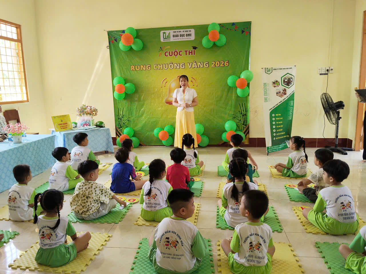 Vừa qua, Công ty TNHH Giáo dục QME đã phối hợp cùng Trường Mầm non Định Hòa tổ chức thành công cuộc thi “Rung Chuông Vàng 2026”. Đây là hoạt động nằm trong chuỗi chương trình giáo dục trải nghiệm, nhằm tạo ra môi trường học tập sinh động, giúp trẻ vừa tiếp thu kiến thức vừa tham gia các hoạt động tương tác thực tế. Chương trình được triển khai với mục tiêu khơi gợi hứng thú học tập và hình thành tư duy tích cực cho trẻ ngay từ bậc học đầu đời.